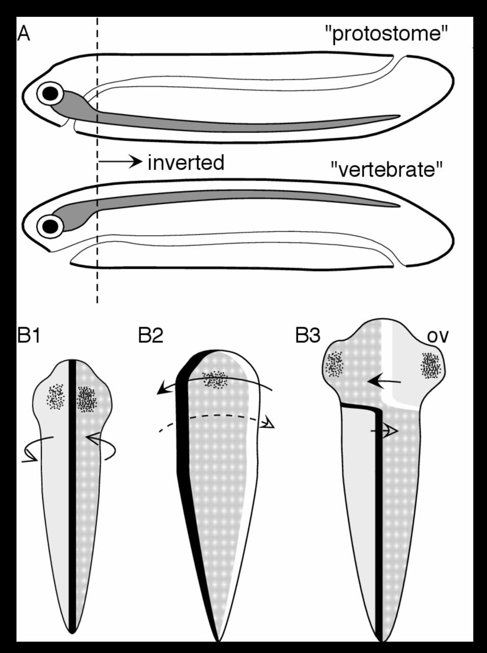 တဖြည်းဖြည်းနဲ့ ကျောရိုးရှိသတ္တဝါများအဖြစ် ဆင့်ကဲတိုးတက်လာတဲ့အခါ ကျောရိုးက ကျောဖက် (dorsal) မှာရှိဖို့လိုလာပါတယ်။