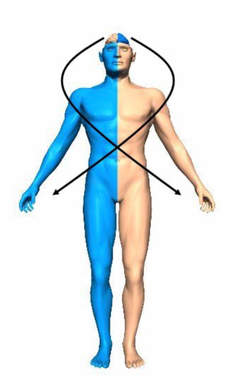 ဤသည်ကို ဆေးပညာအရ Contralateral control of the brain ဟုဆိုကြသည်။