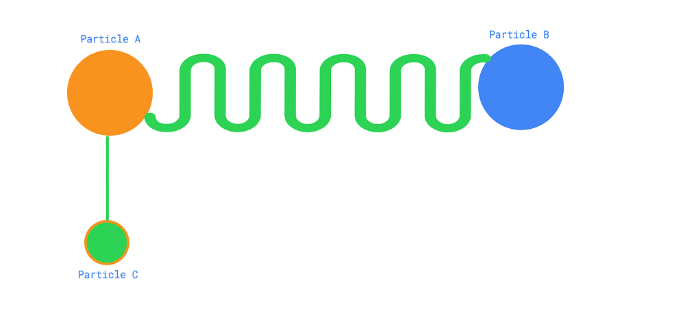 Particle C နဲ့ Particle A ရဲ့ ချိတ်ဆက်မှု Information ကို Record လုပ်ပြီး Particle B ဆီကိုပို့လိုက်တယ်။ (Particle B က Particle A နဲ့ပဲချိတ်ဆက်မှုရှိတာကို သတိပြုပါ)