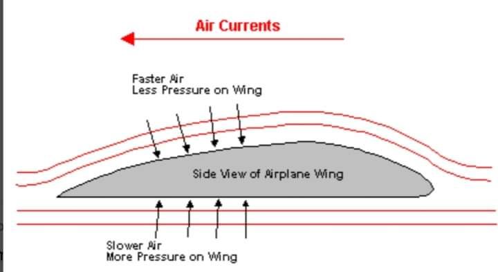 အပေါ်မှာ လေစီး ပိုကြမ်းတော့ ဖိအားကျ အောက်က ဖိအားတက်တော့ ပင့်တင်သလိုဖြစ်ပြန်ပါတယ်။