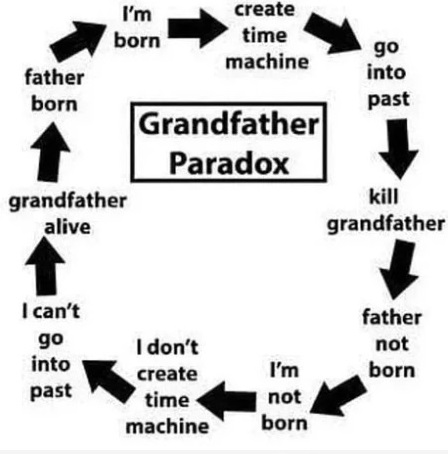 ကိုယ်က အချိန်နောက်ပြန်သွားပြီးတော့ ကိုယ့်အဖိုးကို သွားသတ်မယ်ဆိုရင် ကိုယ့်ရဲ့မိဘတစ်ပါး မွေးဖွားလာမှာမဟုတ်တဲ့အတွက် ကိုယ်လဲမွေးလာနိုင်တော့မှာ မဟုတ်ဘူး။