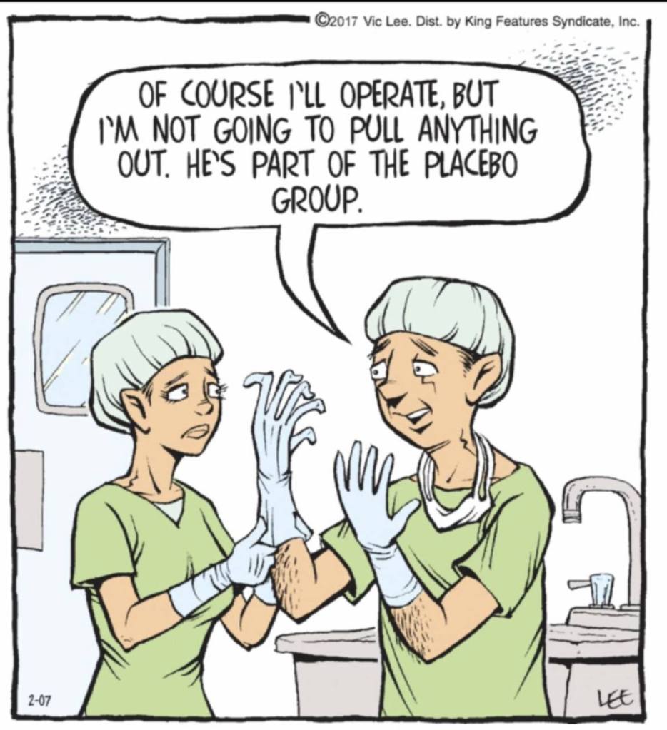 ပထမအုပ်စုက ဒူးနာပျောက်ဆေးလို့ ယုံကြည်စွာနဲ့ လိမ်းတဲ့အခါ တကယ်လဲ နာတာသက်သာသွားပါတယ်။ ဒုတိယအုပ်စုကျတော့ ပြောင်းပြန်ပါ။