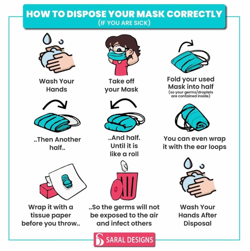Mask တွေကို ပုံမှာပြထားတဲ့အတိုင်း ခေါက်ပြီး စွန့်ပစ်တာအကောင်းဆုံးပါ။