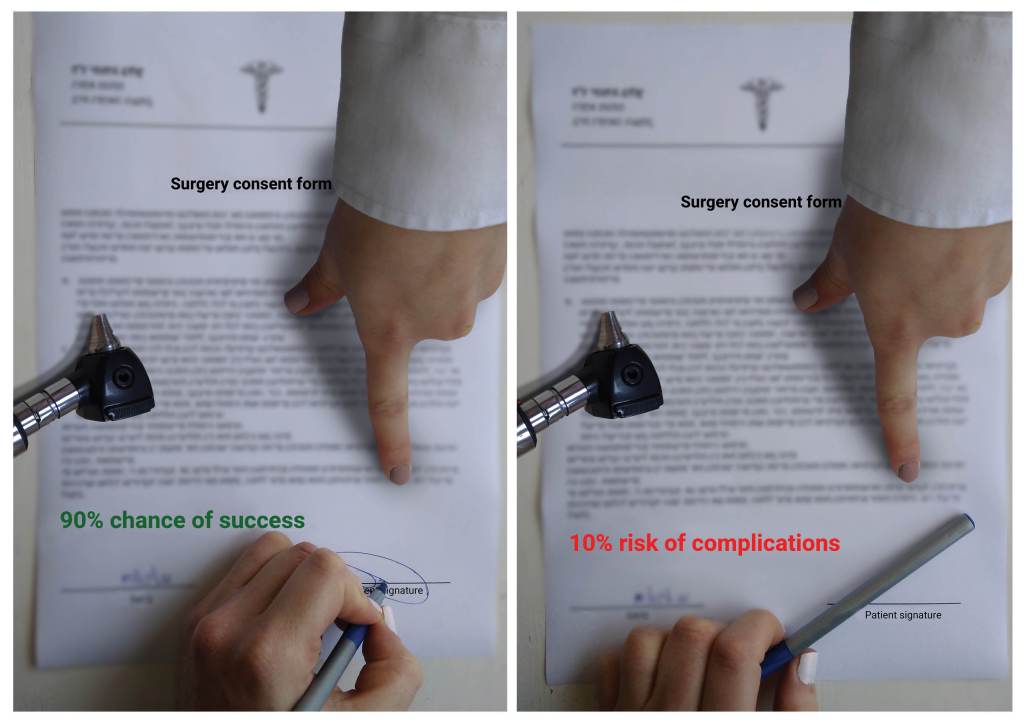 ဥပမာ- ဒီလိုခွဲစိတ်မှုက 80% ပြန်ကျန်းမာတယ်လို့ ပြောတာနဲ့ ဒီလိုခွဲစိတ်မှုက 20% သေသွားကြတယ်လို့ ပြောတာမှာ လူနာတွေရဲ့ လက်ခံပုံခြင်းမတူကြပါဘူး။