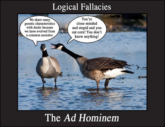 ဒါကို Ad Hominem Fallacy လို့ခေါ်တယ်။ ဖင်ပိတ်ငြင်းတာမျိုး အပင်ပန်းခံပြီး မလုပ်တော့ဘဲ ကိုယ့်ကို ဆန့်ကျင်နေတဲ့သူကို တိုက်ခိုက်တာပါ။