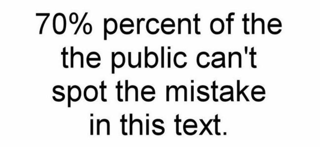 “The” ၂လုံးထပ်နေတာကိုသတိထားမိလိုက်ပါသလား။ ပထမတုန်းက ခပ်မြန်မြန်ဖတ်လိုက်တော့ သင့် brain က Autocorrect လုပ်ချလိုက်တာပါ။