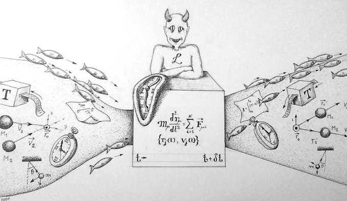 ဒါကြောင့် Newton ရဲ့ခေတ်ပြီးတဲ့နောက်မှာ Laplace ဆိုတဲ့ပုဂ္ဂိုလ်ဟာ Thought Experiment တစ်ခုလုပ်ခဲ့ပါတယ်။ စကြဝဠာထဲမှာ ဖြစ်ပျက်နေသမျှ အရာအားလုံးကိုသိနေတဲ့ သက်ရှိတစ်ကောင်ရှိတယ် ဆိုပါစို့။ ပြောချင်တာက လက်ရှိ Time Zero အချိန်မှာ အမှုန်တွေရဲ့ အဟုန် (Momentum) ၊ နေရာ (Position) နဲ့ သူတို့အချင်းချင်း Interact လုပ်တာတွေကို အကုန်သိနေတာပါ။ ခုခေတ်မှာတော့ ဒါကို Laplace’s Demon လို့ခေါ်ကြပါတယ်။