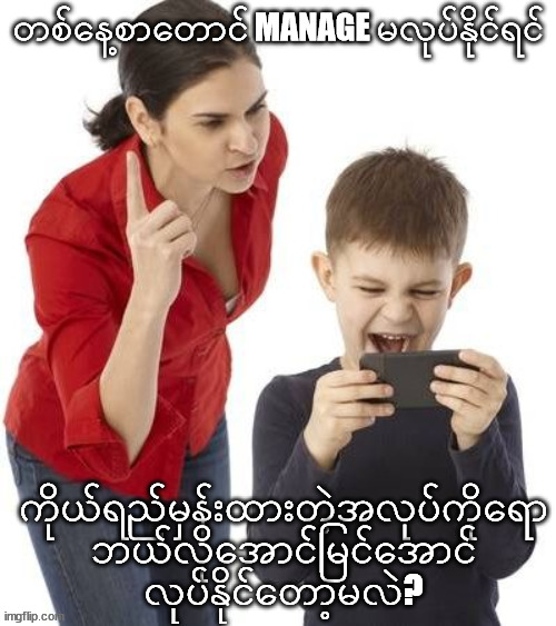 ဒီတော့ တစ်နေ့စာတောင် Manage မလုပ်နိုင်ရင် ကိုယ်ရည်မှန်းထားတဲ့အလုပ်ကိုရော ဘယ်လိုအောင်မြင်အောင် လုပ်နိုင်တော့မလဲ?
