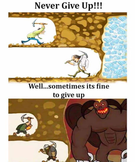“အရှုံးမပေးနဲ့… ကြိုးစား” ဆိုတာကို ပြောင်ထားတာပါ။ အပေါ်ယံကြည့်ရင်တော့ ဟုတ်သလိုလိုရှိပေမယ့် သေချာစဉ်းစားကြည့်တဲ့အခါ အကြီးကြီးလွဲနေပါတယ်။ ရှေ့မှာဘာရှိလဲ၊ ကိုယ်ဘာအကျိုးတွေရနိုင်လဲဆိုတာ ကြိုမလေ့လာဘဲ ဖင်ကုန်းပြီး တူးနေတဲ့လူက လွဲတာပေါ့လို့ ပြောချင်ပါတယ်။ ဒီတော့ သူ့ရှေ့မှာ စိန်တွေပဲရှိရှိ၊ မကောင်းဆိုးဝါးပဲရှိရှိ သူနဲ့ ၂ခုလုံးမထိုက်တန်ပါဘူး။