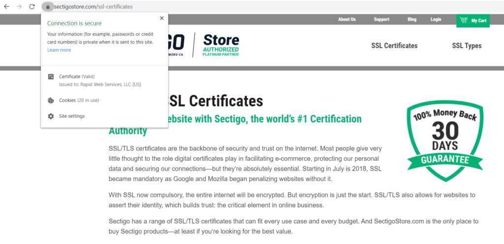 root certificate အထိ verify ဖြစ်တယ်ဆိုရင်တော့ secure ဆိုပြီး Lock 🔒 ပုံလေး ဘယ်ဘက်အပေါ်မှာ ပေါ်နေမှာပဲ ဖြစ်ပါတယ်။ သတိထားမိတဲ့ သူများလည်းရှိမှာပါ။