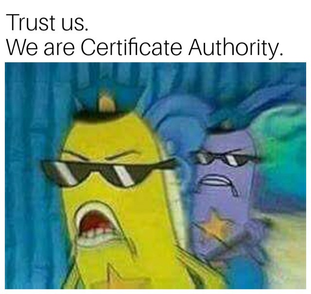 attacker တွေ တုပလိုသူတွေ အနေနဲ့ certificate authority ရဲ့ private key မရှိတဲ့ အတွက် ဒီ chain of trust ကို ဖြတ်ဖို့ အင်မတန်ခက်ခဲပါတယ်။ သိုပေမဲ့ certificate authority နဲ့ပတ်သတ်ပြီး private key leaked ဖြစ်သွားတဲ့ ဖြစ်စဉ်တစ်ခုတော့ ရှိခဲ့ဖူးပါတယ်။ ဒီအကြောင်းကိုတော့ မိမိဘာသာ ရှာဖတ်နိုင်ပါတယ်။ သို့သော်လည်း လက်တလောမှာတော့ ကျနော်တို့ ပေးပို့ ရယူနေတဲ့ အင်တာနက်ပေါ်က ဆက်သွယ်မှုတွေအားလုံး ဒီနည်းနဲ့ လုံခြုံနေဆဲပဲ ဖြစ်ပါတယ်။