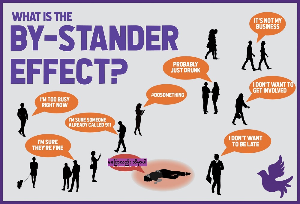 ဒီလိုပဲ… Bystander Effect မှာလည်း ဒီသဘောတွေရှိပါတယ်။ (ဘာလဲဆိုတာ အရင်က ရေးပြီးပြီမို့ ထပ်မရေးပြတော့ပါဘူး) ကိုယ်က လမ်းဘေးမှာလဲနေတာဟာ အရေးကြီးမှန်း ထုတ်မပြောဘဲနဲ့ တစ်ဖက်လူတွေသိနိုင်မယ်လို့ ထင်မိတတ်ပါတယ်။ ဒါလည်း Illusion of transparency ပါပဲ။