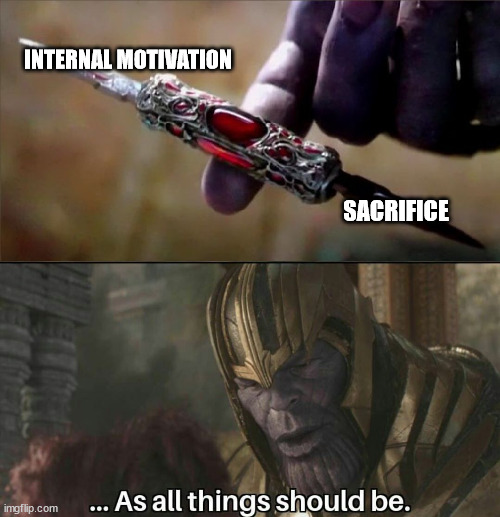 ဒီတော့ တကယ်ဖြစ်ချင်တယ်ဆိုတာလည်း သေချာပြီ၊ Internal Motivator တစ်ခုလည်း ရှိနေပြီဆိုရင် နောက်အခက်အခဲတစ်ခုကြုံရနိုင်ပါသေးတယ်။ ဒါကတော့ Sacrifice ပါ။ ဒါက Motivation မရှိရခြင်းရဲ့ နောက်ဆုံးအဆင့်ပါပဲ။