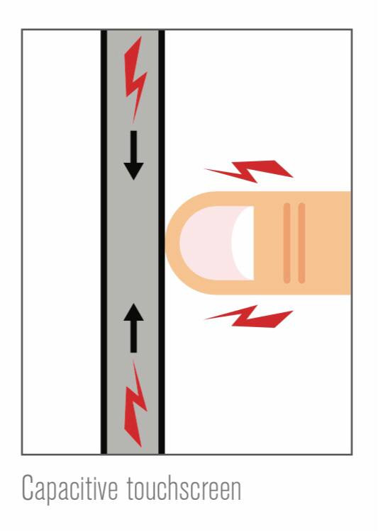 နောက်ပိုင်းသုံးလာတဲ့နည်းကတော့ Capacitive touchscreen နည်းပညာဖြစ်ပါတယ်။ သူ့ရဲ့သဘောတရားကတော့ screen ပေါ်ကို လျှပ်စစ်ဓာတ်လွှတ်ထားပြီး လူကထိလိုက်တဲ့အခါ လျှပ်စစ်ဓာတ်အနည်းငယ်က လက်ကိုစီးသွားပါတယ်။