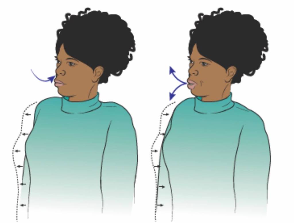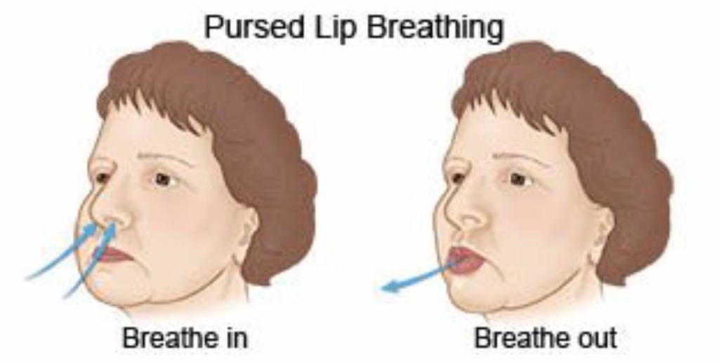တချို့ကလဲ နှုတ်ခမ်းကိုဆူထားပြီး ပါးစပ်က လေထုတ်တာမျိုးလုပ်ပါတယ်။ Pursed lip breathing လို့ခေါ်ပါတယ်။ နှုတ်ခမ်းဆူထားရင် အသက်ရှူထုတ်ရတာပိုလွယ်လို့ပါ။
