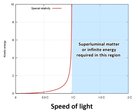 အရာဝတ္ထုတစ်ခုဟာ အလင်းအလျင်နဲ့ နီးလာလေလေ Energy လိုလေလေပါပဲ။ Einstein ရဲ့အဆိုအရပြောရရင် အလင်းအလျင်ကို ရောက်ဖို့ Energy Infinity လိုမှာပါ။ (မဖြစ်နိုင်ဘူးပေါ့…)