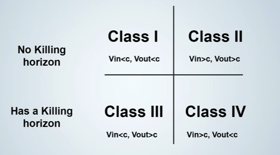 ပုံကိုကြည့်လိုက်ရင် အလင်းအလျှင်ထက်မမြန်တာ Class I တစ်ခုပဲရှိပါတယ်။ ဒါကြောင့် ဒါကပဲ လက်တွေ့မှာဖြစ်နိုင်ပါတယ်။ Superluminal Matter လည်းမလိုသလို Negative Energy လည်းမလိုပါဘူး။