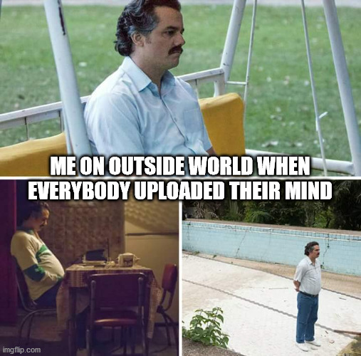 ဒီနည်းပညာသာ တကယ်ဖြစ်လာခဲ့ရင် လက်တွေ့ဘဝနဲ့ အတုယောင်ဘဝကြားမှာ အလွှာပါးပါးလေးပဲ ရှိတော့မှာပါ။ စိတ်ပျက်စရာကောင်းတဲ့ လက်တွေ့ဘဝထဲကနေ ခဏတာရှောင်ထွက်ဖို့ ရုပ်ရှင်တွေကြည့်၊ ဂိမ်းတွေဆော့တတ်ကြပါတယ်။ ဒီလိုသာ သိစိတ်ကို Upload လုပ်ပြီး ကိုယ်လုပ်ချင်တာလုပ်လို့ရသွားရင် လက်တွေ့ဘဝထဲမှာ နေတဲ့သူတွေ ရှိပါဦးမလားဆိုတာ စဉ်းစားစရာပါပဲ။