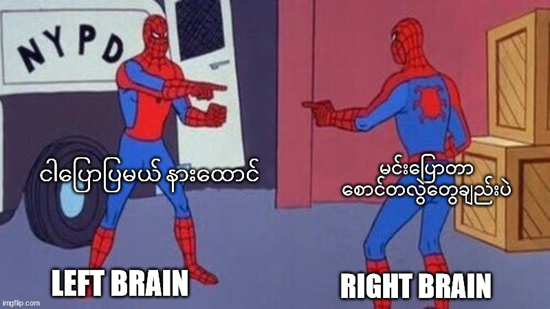 ကိုယ့်ရဲ့ညာဘက်ဦးနှောက်က သူသိသလောက်နဲ့ လောကကြီးကို ကြိုးစားပြီးနားလည်အောင် လုပ်နေပါတယ်။